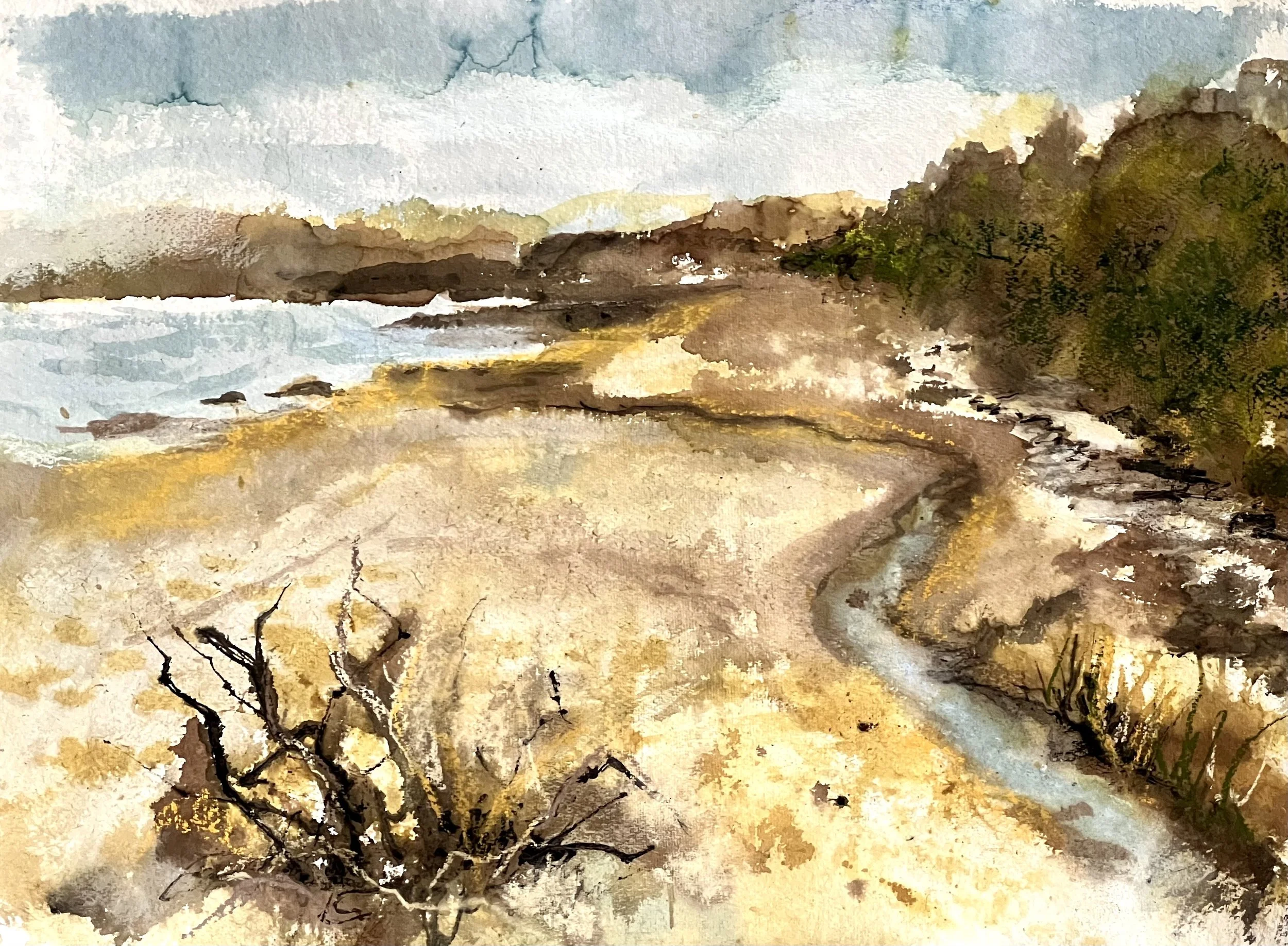 I’ve been exploring different ways of using my botanical inks in my artwork, either on their own or in combination with other materials. These inks have their own particular properties and ways of behaving that can be a challenge to use. I’m enjoying the learning process, and the chance to deepen my connection to the plants growing around me.
